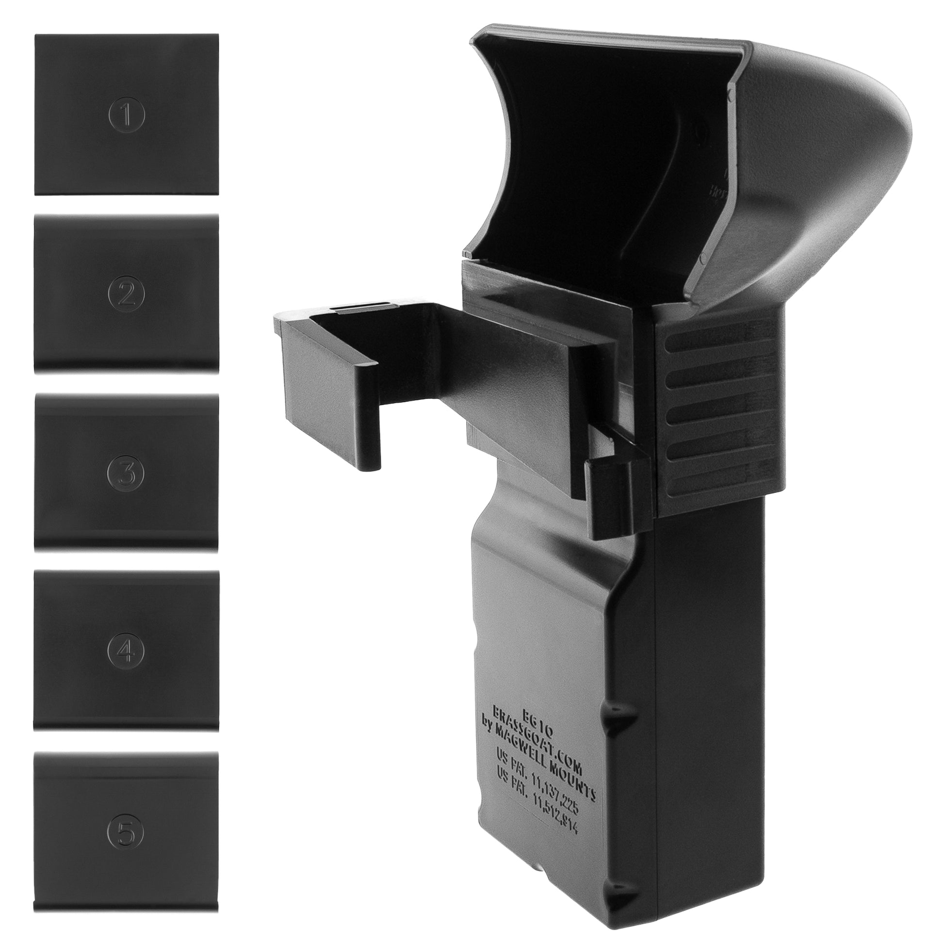 Brass Goat (BG10) is made to easily snap onto the magwell of your AR-10 lower receiver. This product uses (5) different-sized removable shims that are used to allow for the differences in the dimensions of the lower receiver across manufacturers.